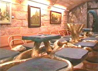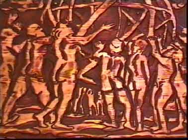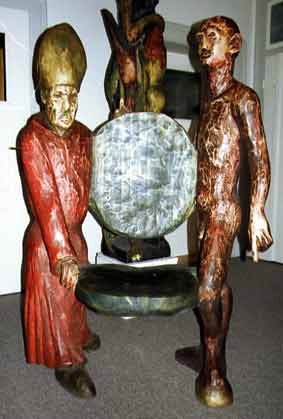 Schöpfungstisch, Tannenholz, geschnitzt, farbig gefasst, 300cm x 100cm x 76cm, 2001