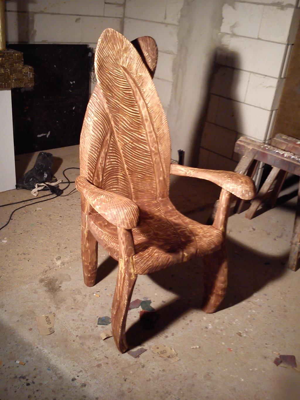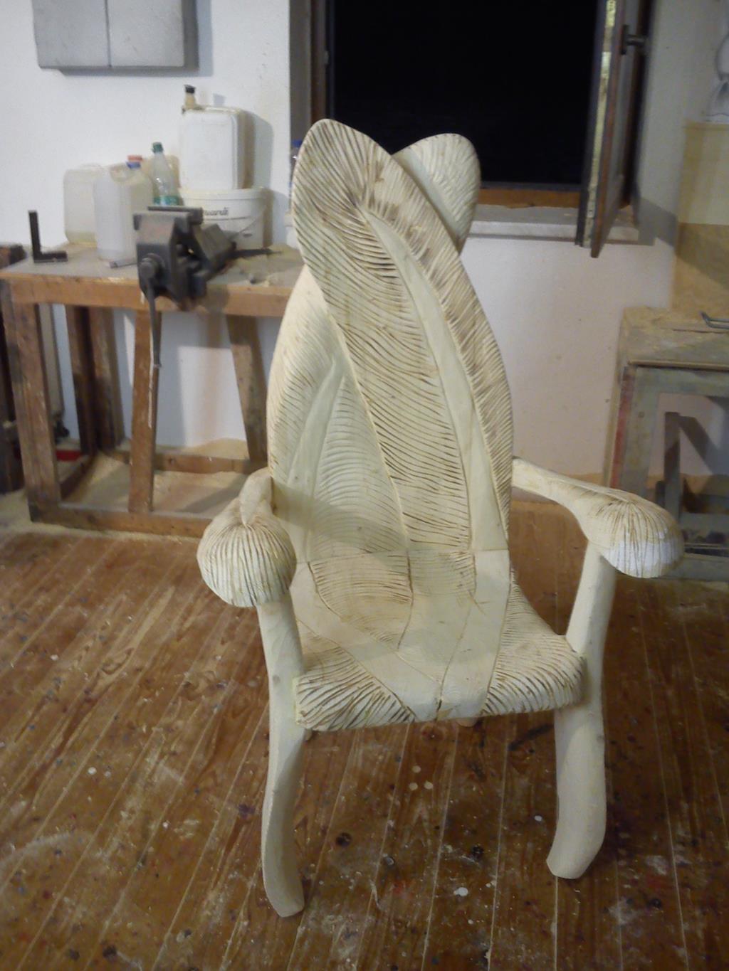 Vogelfederstuhl, Tanne, geschnitzt, 2012